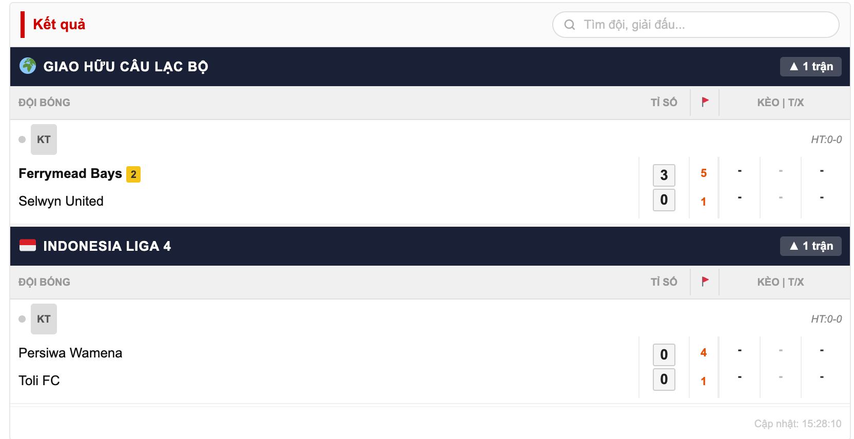 Trên trang chủ, bạn có thể nhấp vào các tab như “Đang diễn ra”, “Kết thúc” hoặc “Lịch thi đấu” để xem kết quả hoặc các trận đấu sắp tới. Bạn cũng có thể sử dụng thanh tìm kiếm hoặc chọn giải đấu yêu thích từ menu để lọc kết quả.
