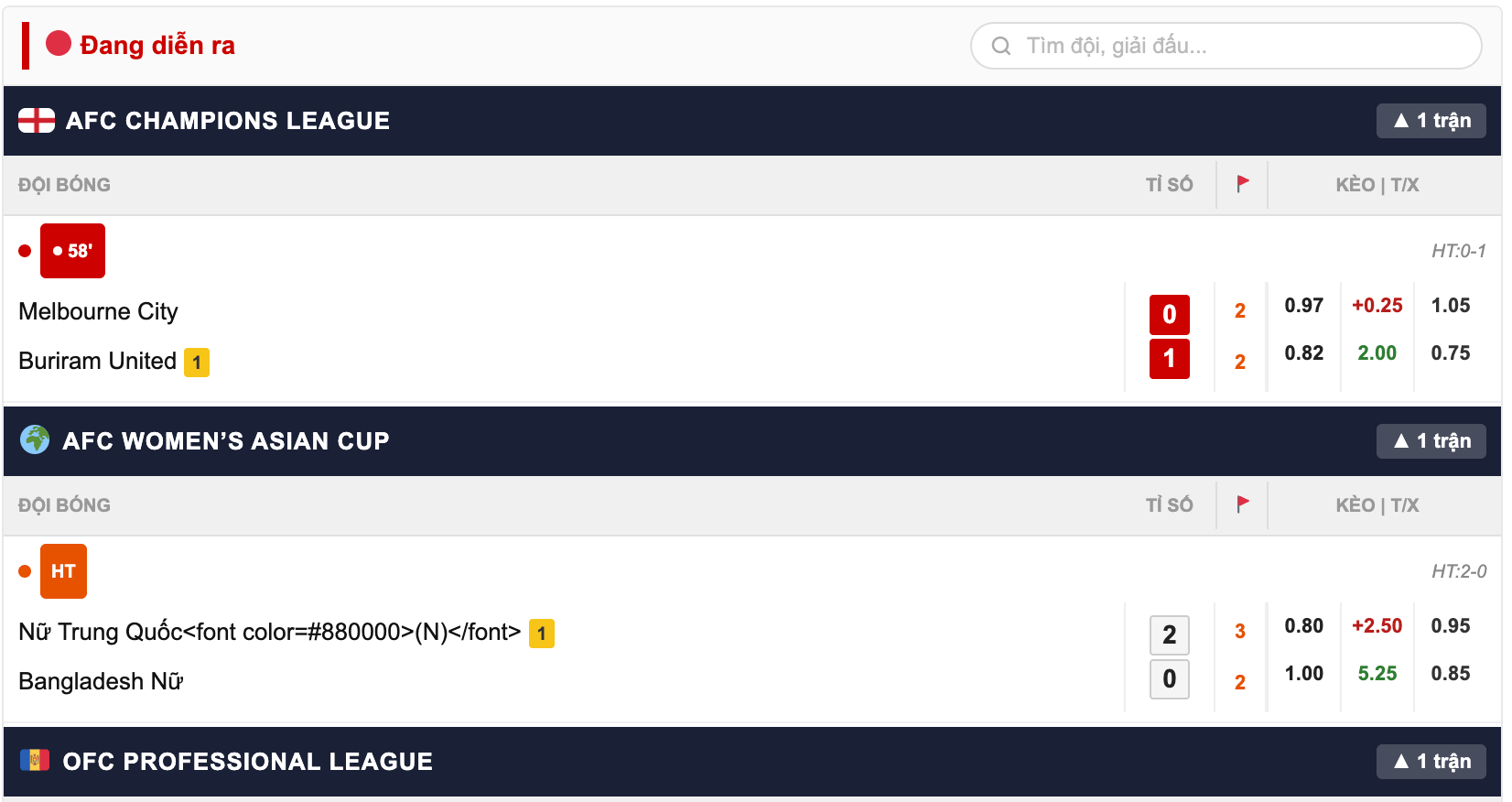 Theo dõi nhiều trận cùng lúc